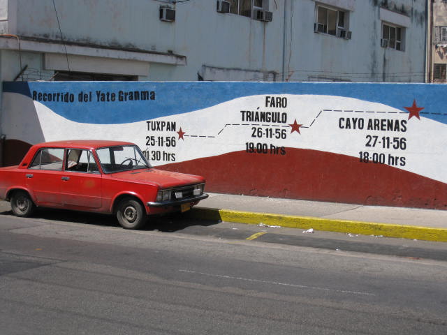 ハバナ市内を歩いていたときに偶然、グランマ号の航海ルートと時間を記した壁画に遭遇した。