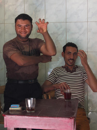 その建物に入った瞬間全てを察知した。そこはラクダ引き屋だったのだ。壁には俺と同じようにしてここに連れてこられ、抵抗するまもなくラクダに乗せられた引きつった笑顔の欧米人の写真が所狭しと貼られている。そのとき、奥からカーフィア(スカーフ)を巻いてガラベイヤ(ゆったりとしたシャツとスカートが合体したような服)を身に着けた大男のおっさんが奥から金歯を光らせて登場した。そして居丈高にそばにいた下男にチャイを持って来いと命ずると、僕に向き直り茶色く濁った目を細めながら黒い顔を緩ませ何とも言えない不気味な笑顔を振り向けてきた。(くぅ。このキャスティング、シチュエーションに合い過ぎ)