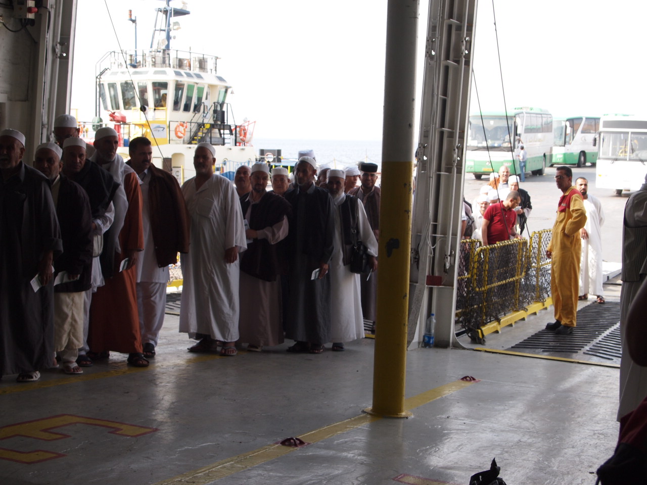 ギザのピラミッドに行くために、早朝カイロ市内のタリフール市バスターミナルまで行き、そこからクフ王のピラミッド近くまで行く357番のバスを待った。むろんバス停などなく近くにいた人に聞いた場所でひたすらバスを待つ。そこには既に外国人のようなそうでもないような風貌の3人組がバスを待っていた。30分くらいしてようやく357とアラビア数字で書かれたバス(このため前夜アラビア数字を必死で覚えた)が到着し運転手にピラミッドまで行くことを確認後乗り込んだ。