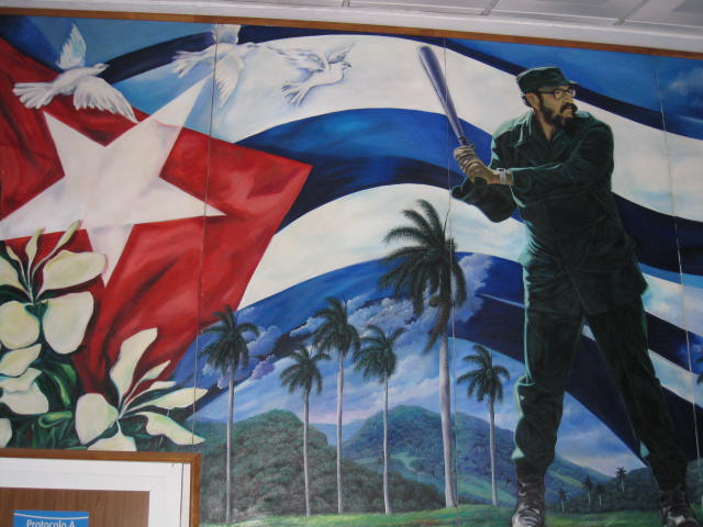 (キューバの野球場に描かれていた壁画。ピースフルなカリブ海の背景とバットを構える眼鏡カストロさんのアンバランスさが、逆にのびのびとしたスケールのでかさを感じさせる)
