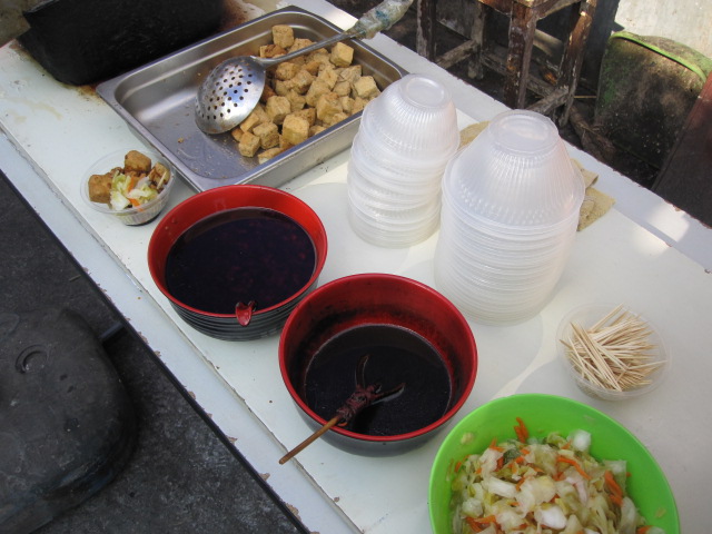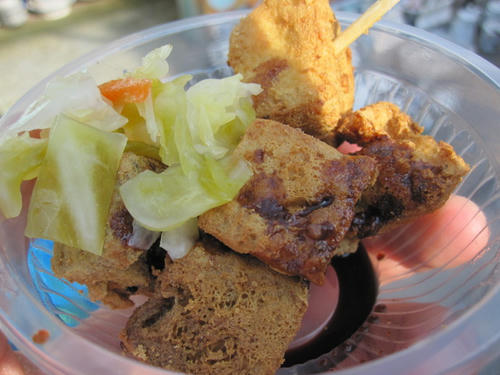 そんな屋台の中で、“臭豆腐”(シュートーフと発音)の屋台はメジャークラスみたいでよく見かけた。というより臭豆腐の屋台の半径50メートルに入ると、その強烈な臭いですぐに分かるのだ。そうだな。例えて言うなら発酵させた靴下(?)の臭いかな。中国人も臭いにおいを表現するときに臭豆腐を例にあげるほどの臭さだ。