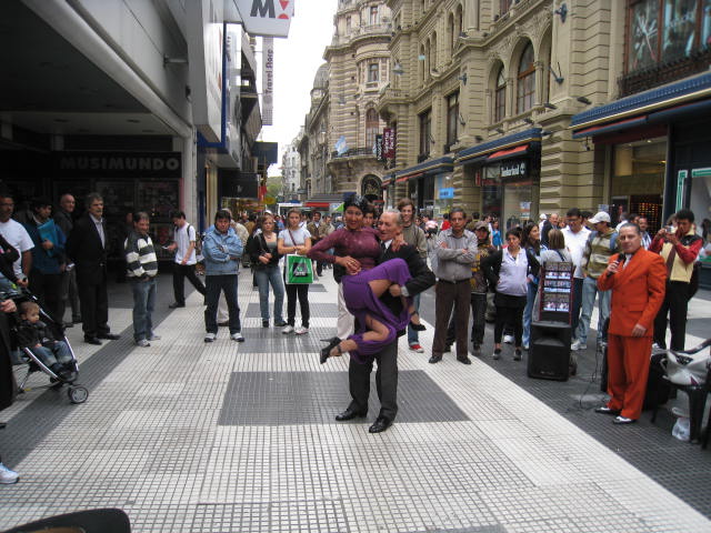 (ブエノスアイレス中心街。あちこちで見世物が行われている。ビバ人間!)