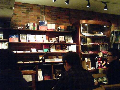 メキシコのビールを飲みながら、古川氏のメキシコ体験段、著書の朗読、小説についてなど聞いた。なかなかパワーのある作家さんで話は面白かった。だが、途中一度だけ意識を失い首が折れそうなくらいコックリしてしまった。最近人の話を聞いてるとこれが多い。これってごまかすの大変なんだよ。わざとらしく首の旋回運動するふりしたりしてね。